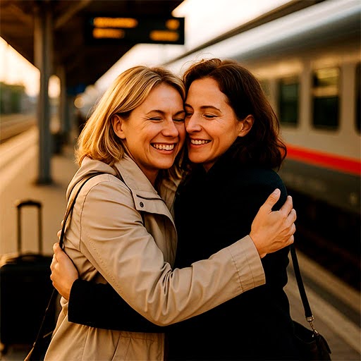 Обнялись, прижались друг к другу, поцеловались, улыбнулись.