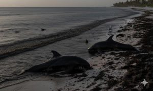 Но в это утро запах моря был кем-то варварски похищен и безжалостно заменен на запах мазута. И сколько бы я не шел, мне было не выбраться из этой ловушки. По всему побережью стоял едкий запах мазута, от которого начала раскалываться голова. Запах заполнил всё пространство: и воздух, и воду, и песок. Он въедался под кожу. По словам сына, по всему берегу до самого горизонта были «щедро разбросаны» мягкие кляксы мазута. И дополнялся этот пейзаж волнами, черными от мазута. Птицы, попадая в эту пленку, уже не могли взлететь. Рыбы задыхались, попадая в вязкую ловушку, которая выбрасывала их на берег. Мы решили вернуться домой, но натолкнулись на что-то большое и гладкое…. Дельфины! Это были дельфины! Те самые, которые доносили до нас сигналы мира и гармонии…. Пара дельфинов, выброшенная на берег, как символ катастрофы.